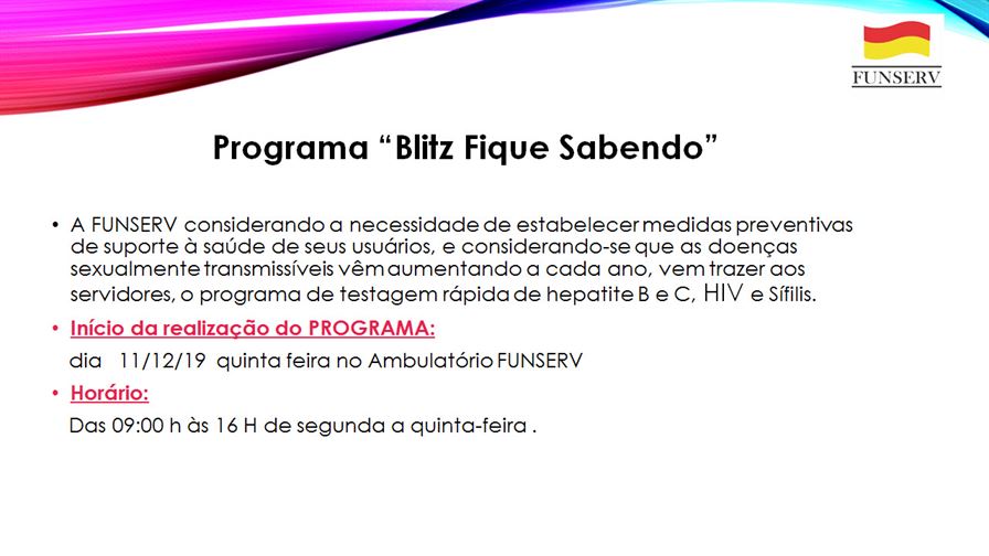 DEZEMBRO VERMELHOPor admin / dezembro 10, 2019 FUNSERV inicia o programa Dezembro Vermelho. CLIQUE AQUI E SAIBA MAIS SOBRE O PROGRAMA